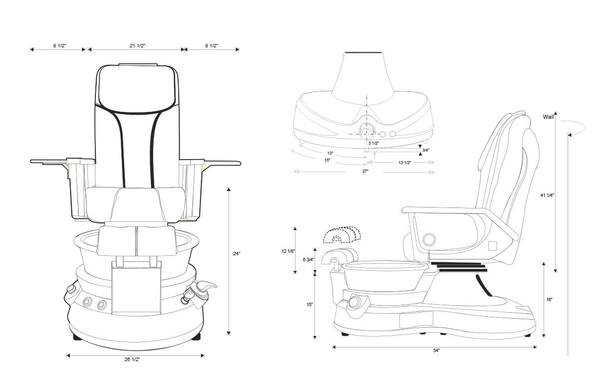 • Power Source: 115 Vac. 60Hz. 3.2 Amp. (Chair), 120 Vac. 60Hz. (Jets)